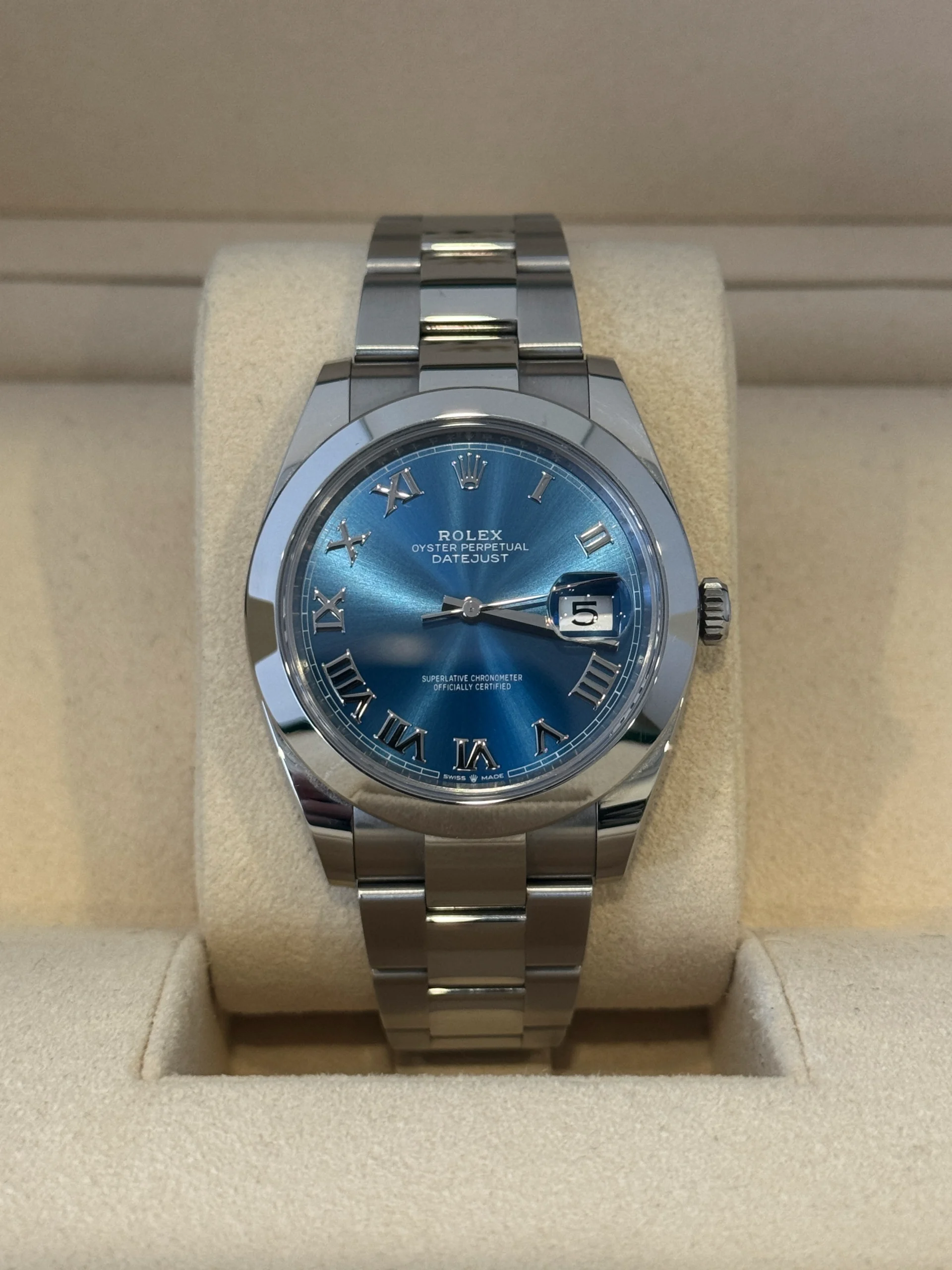2022 Rolex Datejust 41mm (Ref. 126300) in stainless steel, automatic movement. Includes box and documents.