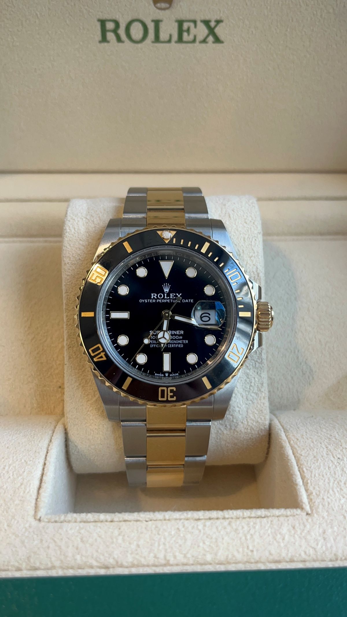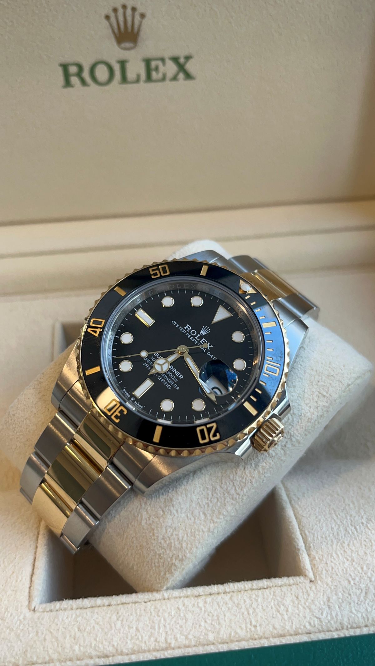 2024 Rolex Submariner Two-Tone (Ref. 126613LN) in 41mm stainless steel and 18k yellow gold, automatic Caliber 3235. Used, box and papers.
